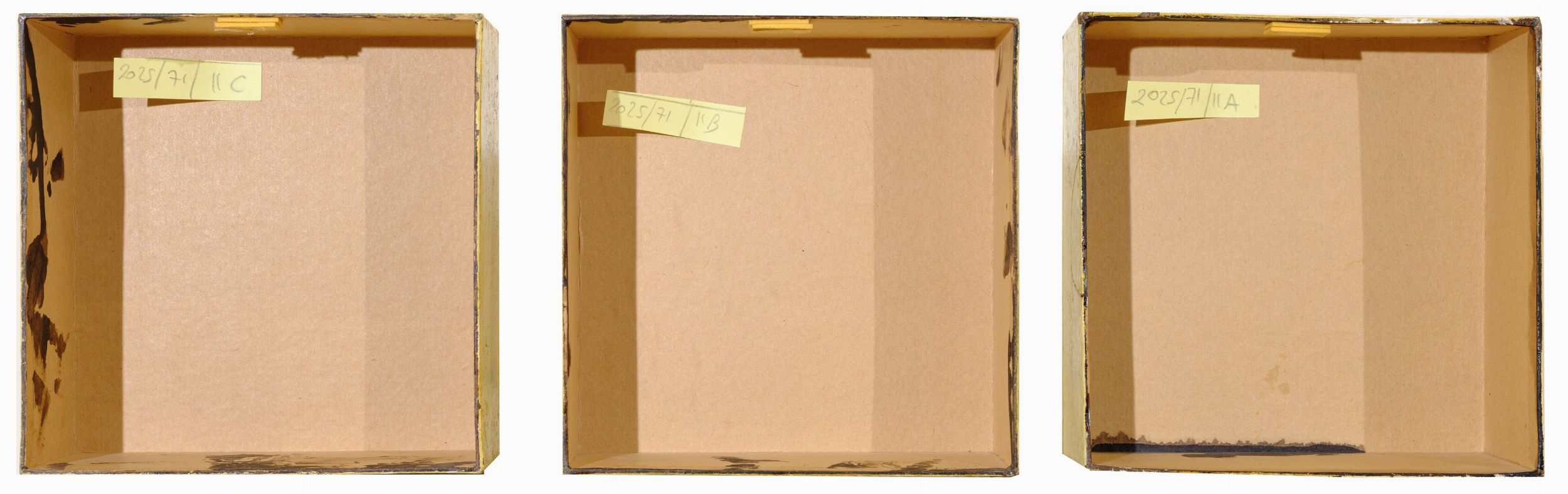 tecnica mista su cartone, cm. 14,5x14,5x6 cad.