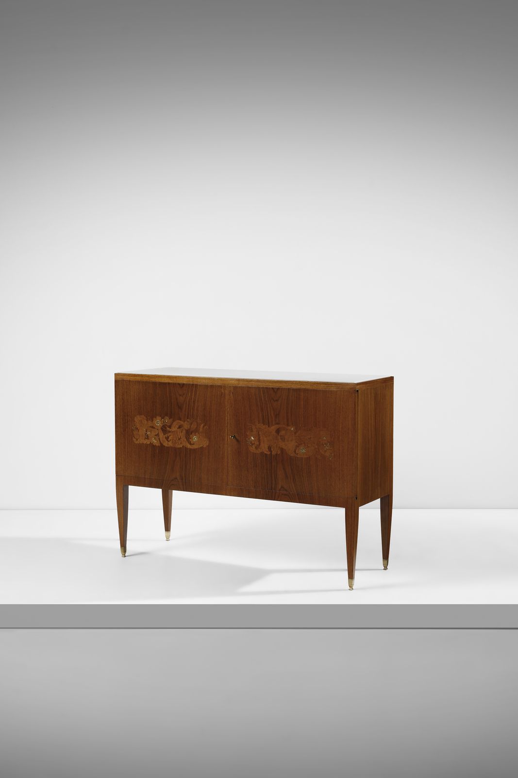 Credenza a due ante con fronti intarsiati con motivi naturalistici, esecuzione Serafino [..]
