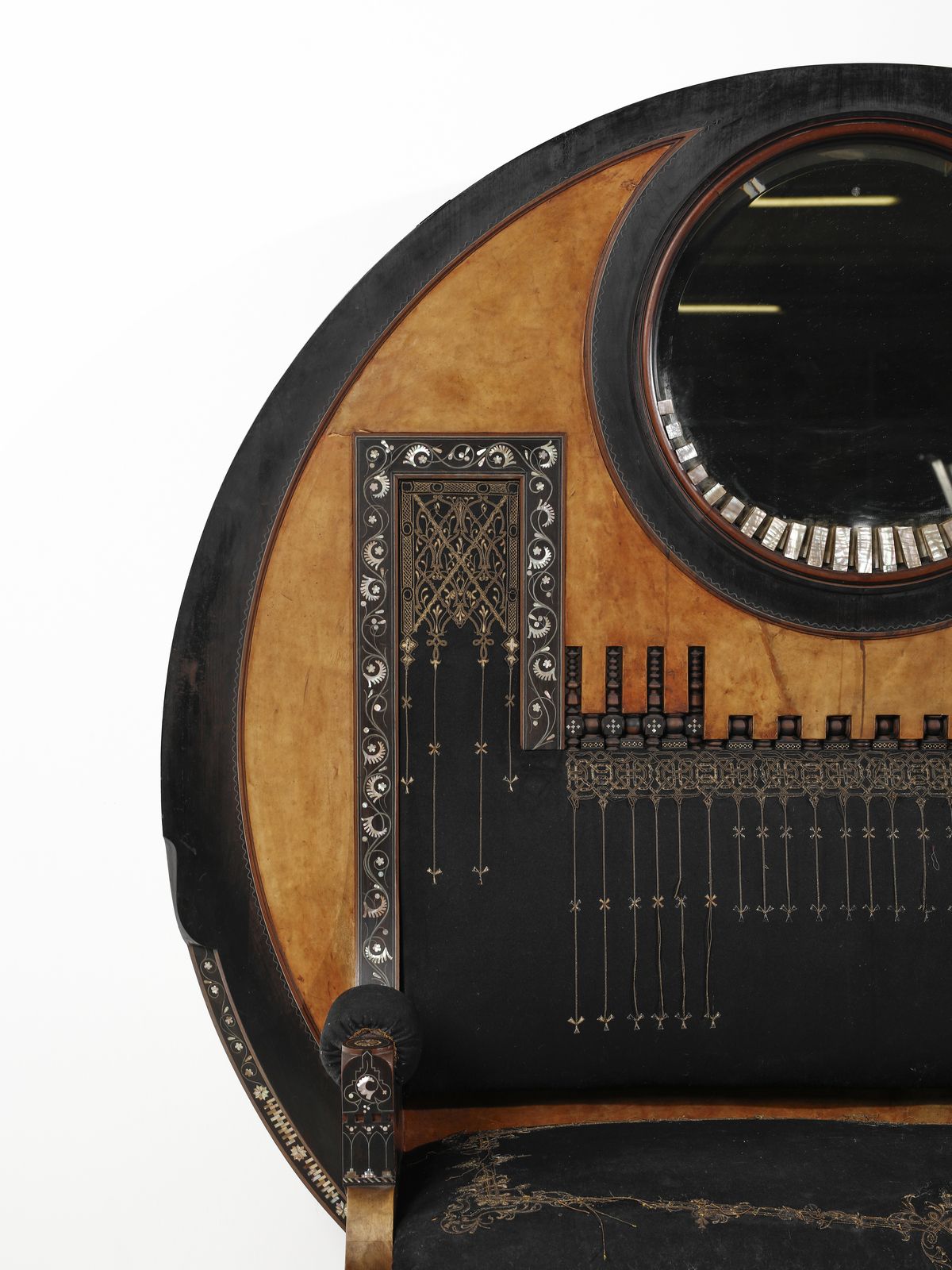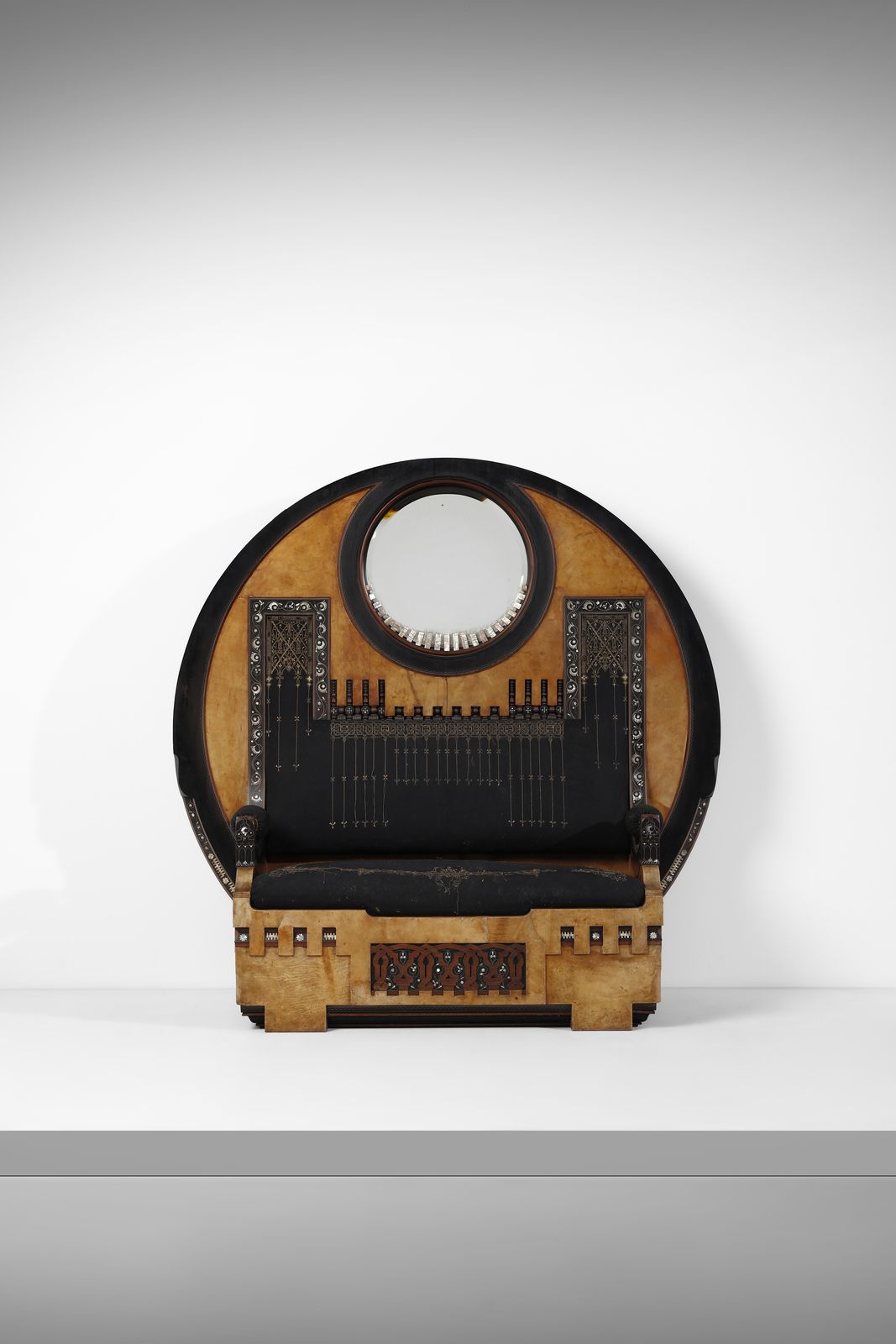 Divanetto Neo-Orientalista con grande testata circolare con specchio