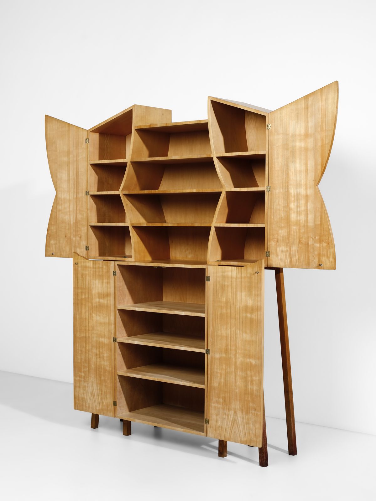 Esemplare di una serie di tre credenze progettate per la mostra 'Rituali domestici' realizzata nell'ambito della manifestazione 'Abitare il Tempo', Verona, 4 - 8 maggio 1989.Bibliografia: Rituali Domestici. Messinscena di oggetti per abitare con arte, Alinea Editrice, Firenze 1989, pp. 36-37. Abitare il Tempo. Dieci anni di ricerca, sperimentazione e nuove prospettive, Edizioni grafiche Zanini, Bologna 1995, p. 81