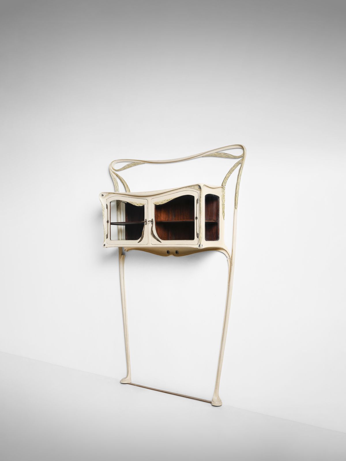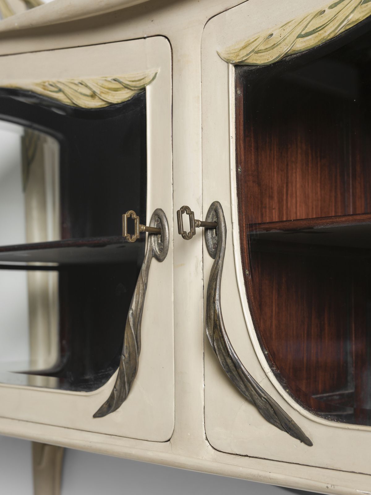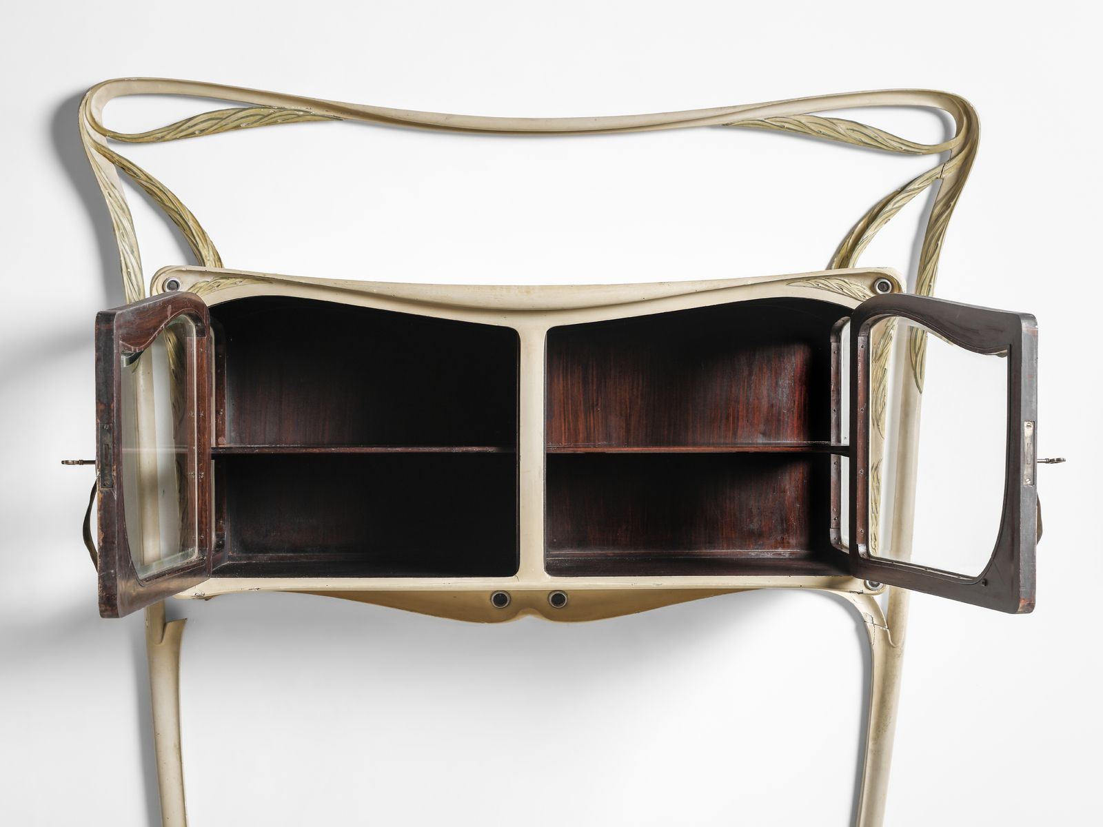 Stipo pensile Art Nouveau con decori a cabochon e a motivi naturalistici