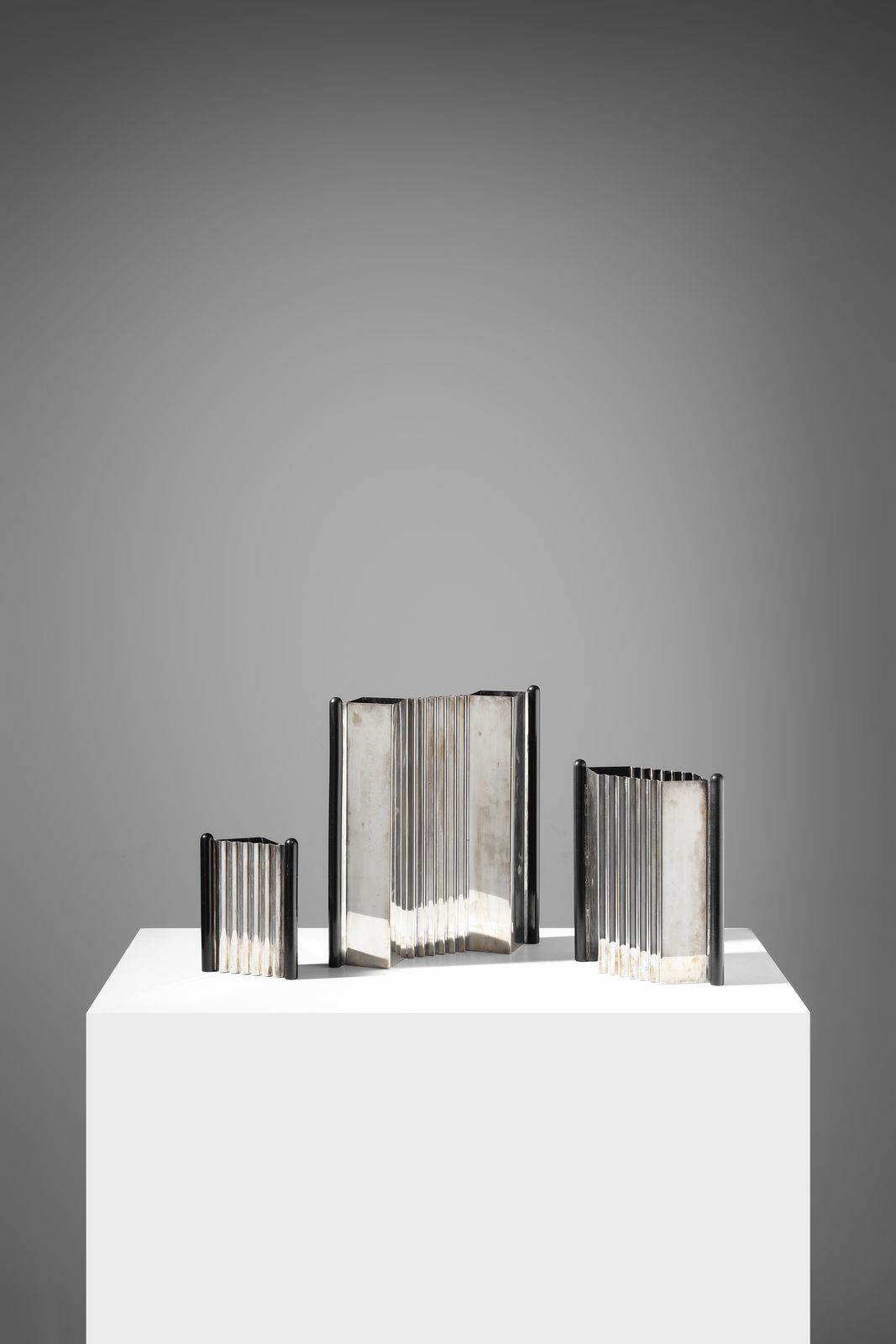 Tre vasi della serie Programma D per Argenterie Ricci, Italia