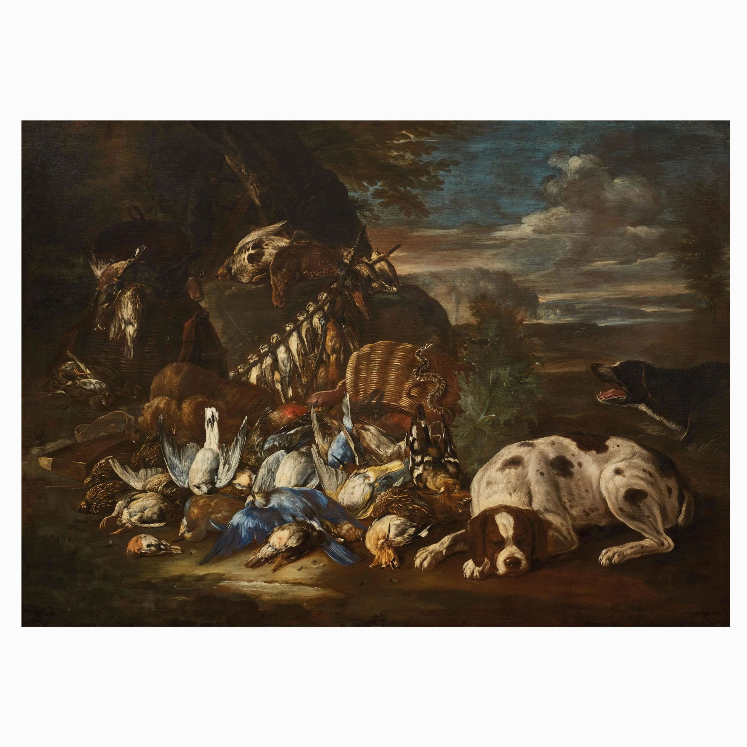 GAME IN A LANDSCAPE GAME IN A LANDSCAPE WITH DOGS pair of paintings, oil on canvas, 126x180.5 cm Game in a landscape signed: “B. D. Caro f.” to the left on the rifle