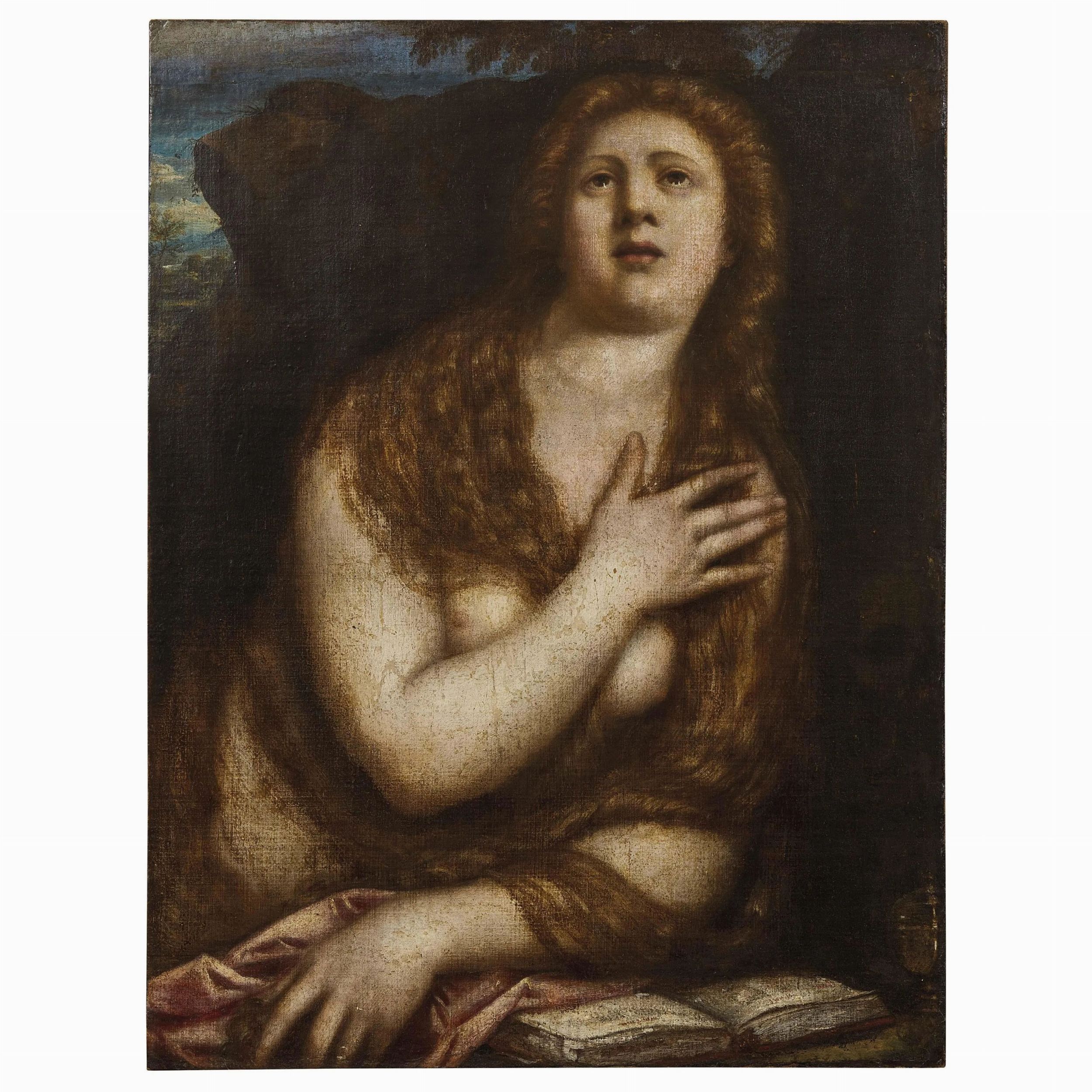 La Maddalena penitente qui presentata era stata ritenuta da Luigi Coletti, Giuseppe Fiocco, Pietro Toesca e Rodolfo Pallucchini come opera tarda di Tiziano, indicativamente da datare entro gli anni Sessanta del Cinquecento. Recentemente, Enrico Maria Dal Pozzolo l’ha riconosciuta come uno dei capolavori della prima attività di Simone Peterzano, che del Vecellio fu uno degli allievi più noti. È una conquista recente aver compreso e circoscritto l’attività veneziana di colui che poi divenne il maestro di Caravaggio a Milano, in quanto prima era testimoniato solo da Giovanni Paolo Lomazzo, pochi documenti d’archivio e l’iscrizione apposta sull’ Autoritratto già di Maurizio Calvesi e oggi all’Accademia Carrara di Bergamo. Solo dagli anni Novanta, grazie ai precoci studi di Mina Gregori, si è incominciata a ricostruire la sua attività veneziana (M. Gregori, Sul venetismo di Simone Peterzano , in “Arte Documento”, 6, 1992, pp. 263-269). Successivamente, sono stati importanti altri affondi della stessa Gregori ( Un amico di Simone Peterzano a Venezia , in “Paragone”, 53, 2003, 3, 41/42, pp. 21-39), di Dal Pozzolo ( La bottega di Tiziano: sistema solare e buco nero , in “Studi Tizianeschi”, IV, 2006, pp. 53-98), di Mauro Pavesi (Una Cena in Emmaus di Simone Peterzano a Palazzo Pitti , in “Nuovi Studi”, 21, 2016, pp. 59-65) e Francesco Frangi ( Tre momenti della storia di Peterzano , in “Nuovi Studi”, 21, 2016, pp. 67-79), per aggiungere nuove opere e fare chiarezza sui tempi e i modi in cui Peterzano entrò in contatto con Tiziano. Grazie a questi nuovi studi, è oggi possibile ricostruire con maggior agio il primo percorso dell’artista. Nato a Venezia nel 1535, è probabile che abbia svolto i suoi anni di formazione nella città natia e che sia poi entrato nell’atelier di Tiziano, dove dovette emergere come pittore di ottima capacità e qualità, soprattutto nei confronti dei meno dotati Orazio e Girolamo Dente. La Maddalena si attesta quindi come opera fondamentale per comprendere la pittura di Peterzano tra il 1560 e il 1565, anni in cui si può collocare anche un’altra importante tela, ovvero Pan che afferra una Menade . Il riferimento attributivo in favore di Tiziano era stato possibile in occasione di un passaggio sul mercato nel 1962 (Mostra dell’antiquariato nella casa moderna , Firenze, Palazzo Strozzi, 24 ototbre-20 novembre 1962, a cura di G. Bellini, P. Vallecchi, Firenze 1962, pp. 5-6), anche perché era evidente che l’opera presupponesse un qualche rapporto con la serie di dipinti con medesimo soggetto realizzati da Tiziano nel corso degli anni Sessanta (tra cui quello conservato alla Galleria d’arte moderna di Palazzo Pitti a Firenze).