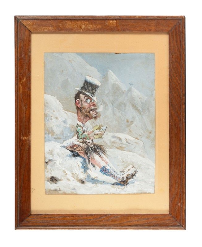 Acquerelli su carta. mm 270x210. Iscritto al verso "E. Lapi - Caricatura di T. Signorini" a matita. Etichetta a stampa recate i dati dell'opera applicata al verso del cartone di supporto.