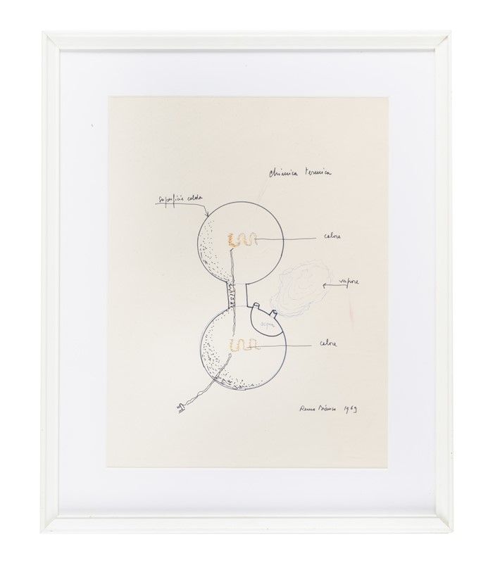 Pennarello, pastello, penna a sfera su carta. mm 405x300. Firma e data in basso a destra. Al verso, timbro di autentica della sorella dell'artista, Lida Bianchi, controfirmato a penna a sfera nera.