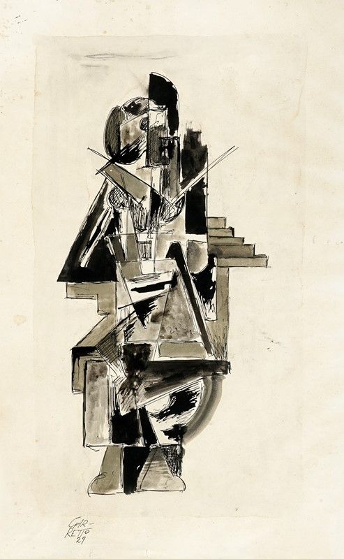 Acquerello, penna, pennello e inchiostro di china. mm 480x312. Firma e data in basso a sinistra.