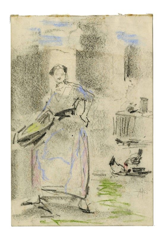 Matita, carboncino e pastello su carta. mm 235x157. Monogramma in basso a destra e timbro dello Studio dell'artista al verso.