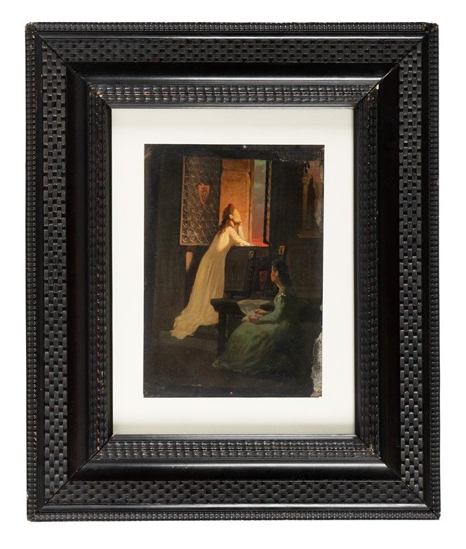 Olio su tela. cm 27x20. Iscritto al verso: "Studio di Pietro Saltini / 1839 - 1908 / Marcello Saltini / Nipote" a penna e inchiostro di china nero.