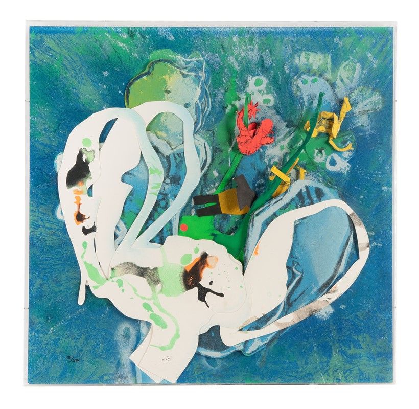 Multiplo su carta applicato su tavola in teca di plexiglass. cm 70,5x70,5. Firma, timbro a secco e tiratura in basso a sinistra. Opera accompagnata dal certificato di autenticità di San Zanobi. Es. III/XIV.