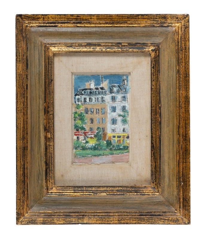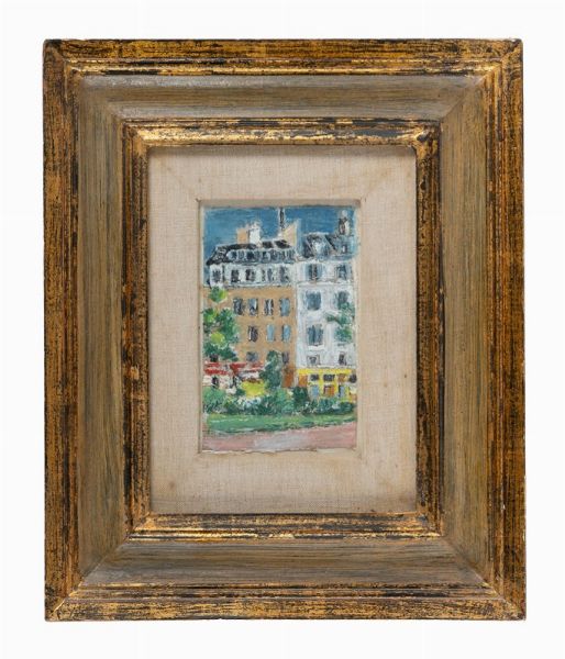 Olio su tela. cm 17,5x10,5. Opera accompagnata dal certificato di autenticità di Galleria Contemporarte Sergio Denti ed etichetta della Galleria stessa applicata al verso dell'opera.