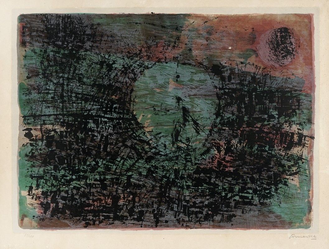 Litografia a 5 colori. mm 435x590. Foglio: mm 500x643. Firma a matita in basso a destra e tiratura in basso a sinistra. Sotto alla tiratura, timbro a secco. Es. 59/120.