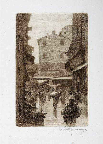 Acquaforte. mm 370x236. Foglio: mm 611x476. Monogramma in basso a sinistra in lastra e firma a matita in basso a destra.