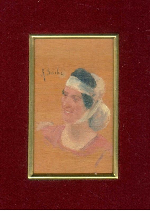 Olio su tavoletta. cm 6,1x3,8. Firma in alto a sinistra.