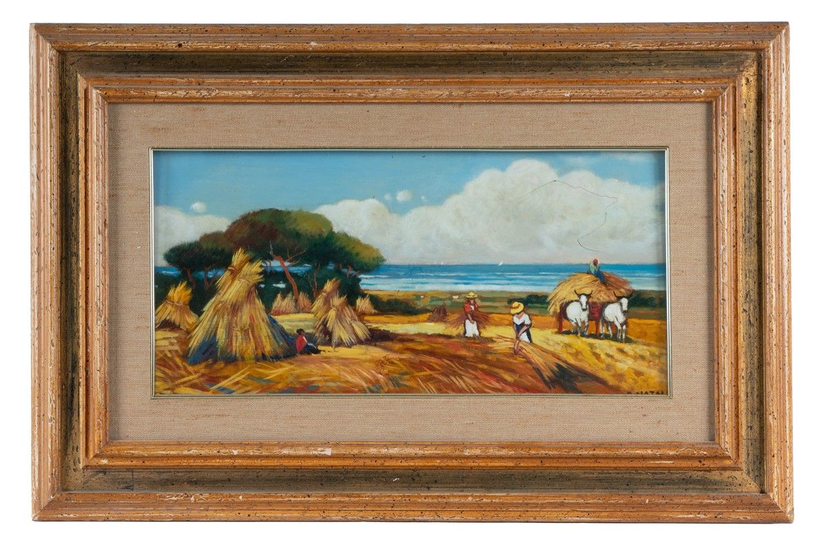 Olio su tavola. cm 24,5x52,5. Firma in basso a destra, controfirma e data a matita al verso. Provenienza: Bottega D'Arte, Livorno, la cui etichetta è applicata al verso.