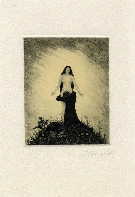 Acquaforte e puntasecca su velina crema applicata. mm 130x104. Foglio: mm 390x310. Firmata a matita in basso a destra.