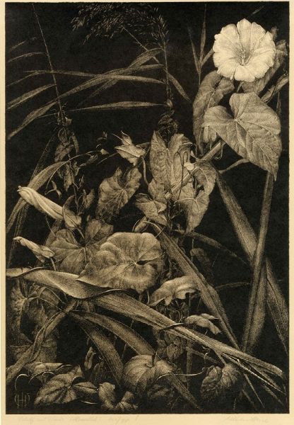 Litografia. mm 355x240. Foglio: mm 480x320. Monogrammata in lastra in basso a sinistra. Titolo, "Steinstich" (Incisione su pietra) e tiratura a matita in basso a sinistra. Firma a matita in basso a destra. Da Nächtliche blumenstücke, serie di 14 litografie pubblicata a Monaco di Baviera intorno al 1925. Es. "150/90".
