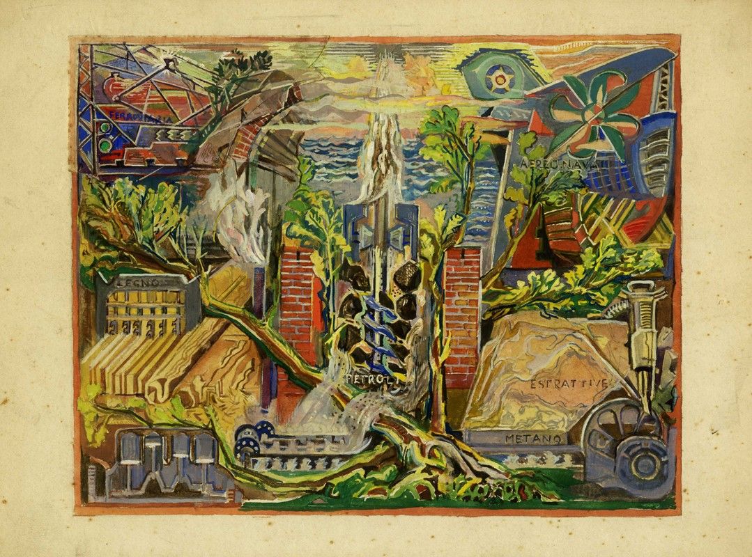 Acquerello e matita su carta. mm 240x330. Una parte, la superiore sinistra, è applicata a collage e sotto è visibile un'altra parte di disegno.