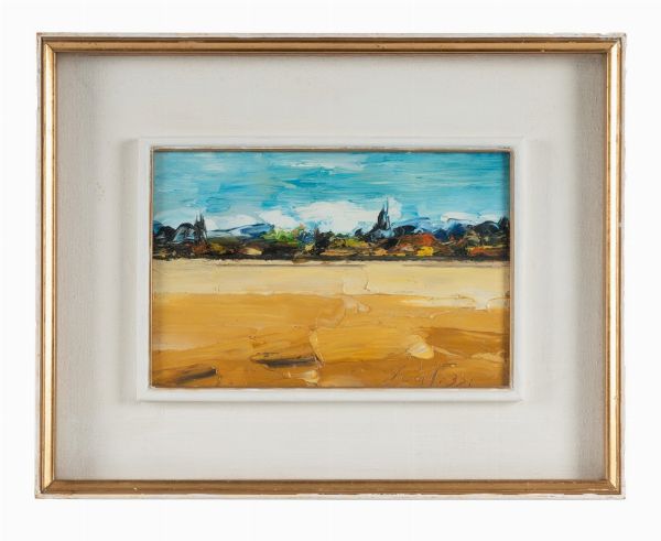 Olio su tavola. cm 20x30. Firma in basso a destra e controfirma al