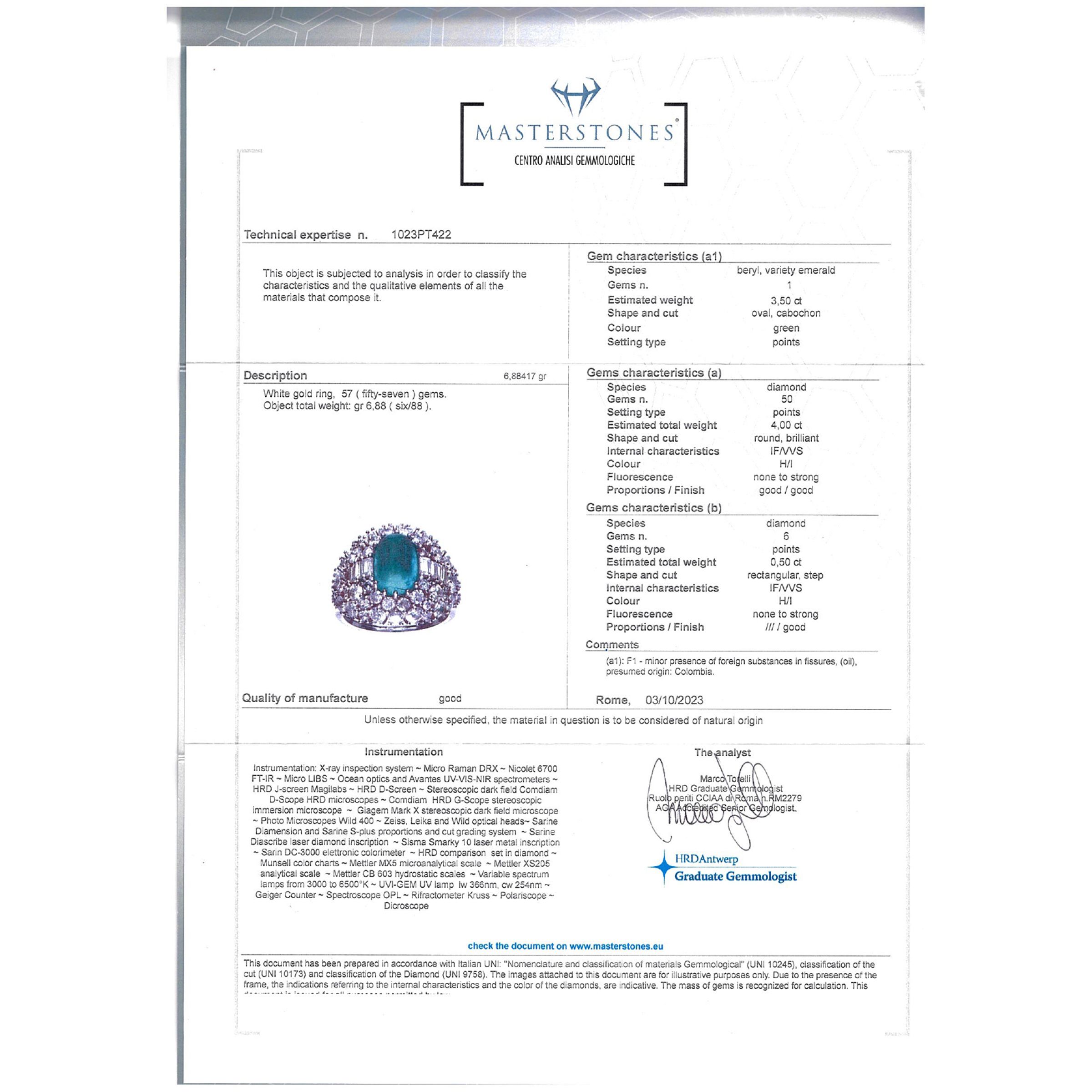 Anello in oro bianco 18kt e smeraldo Colombiano naturale