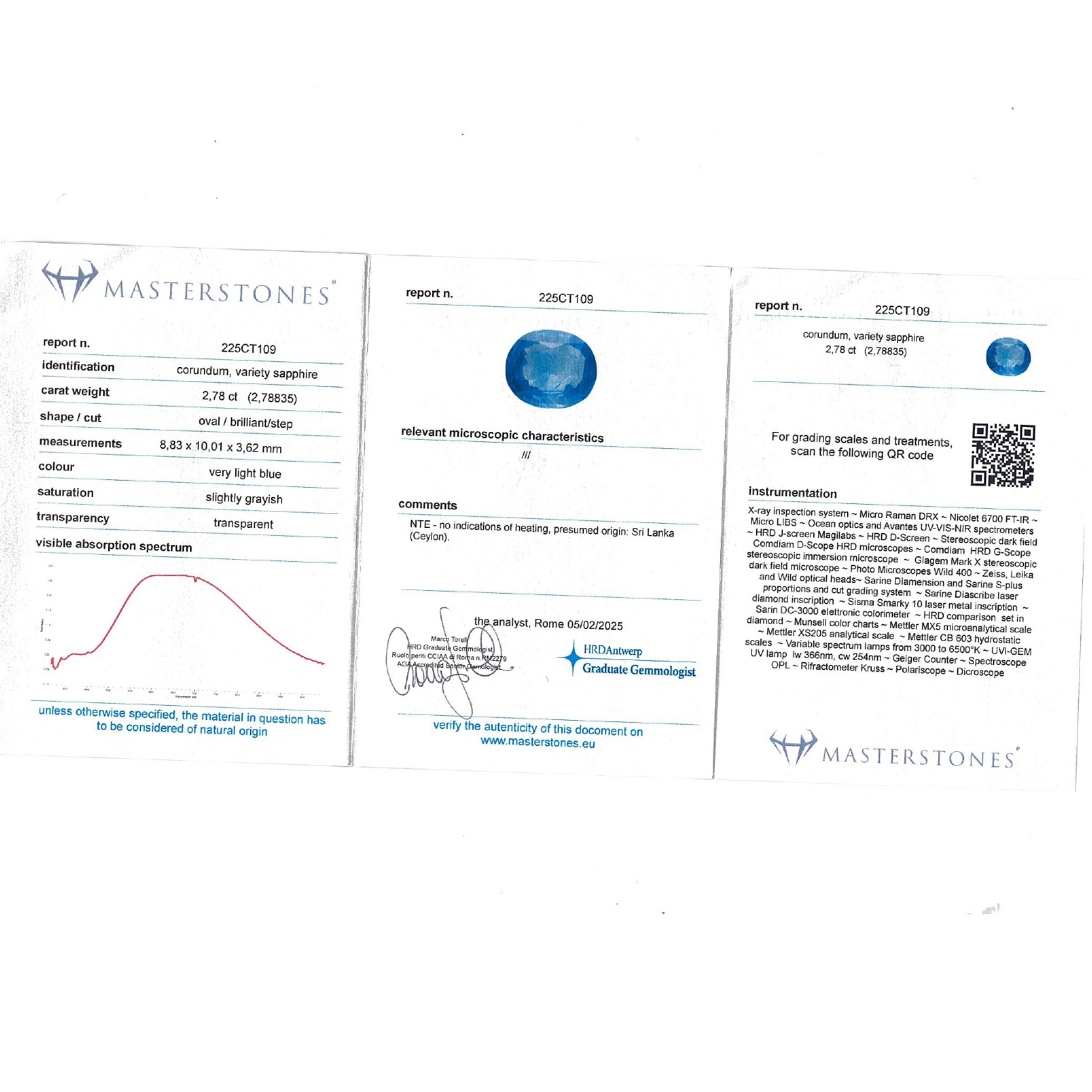 circa, taglio ovale misto ct 2,78 circa, privo di trattamento termico, contornato da diamanti taglio brillante ct 1,10 circa, misura 15, completo di certificato gemmologico
