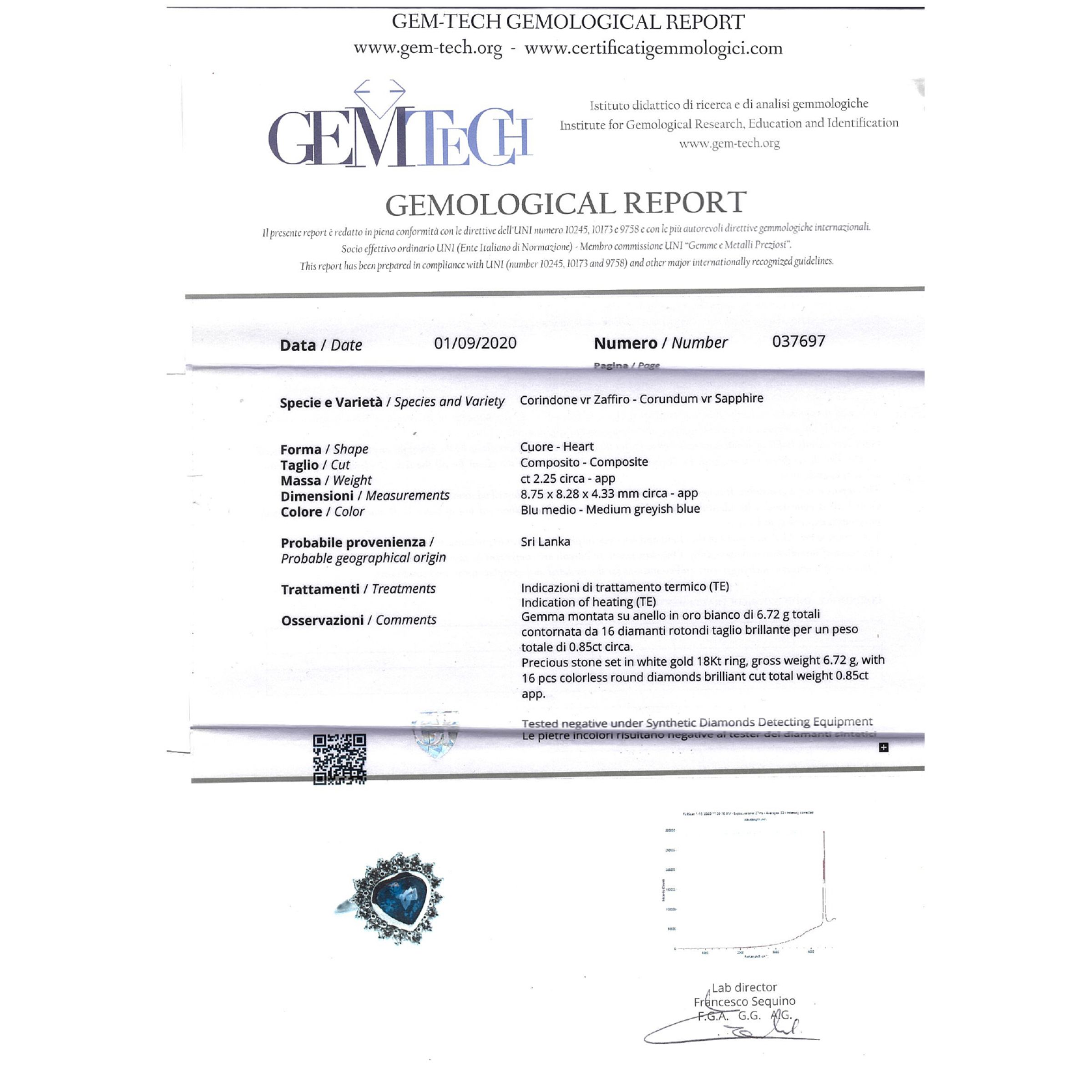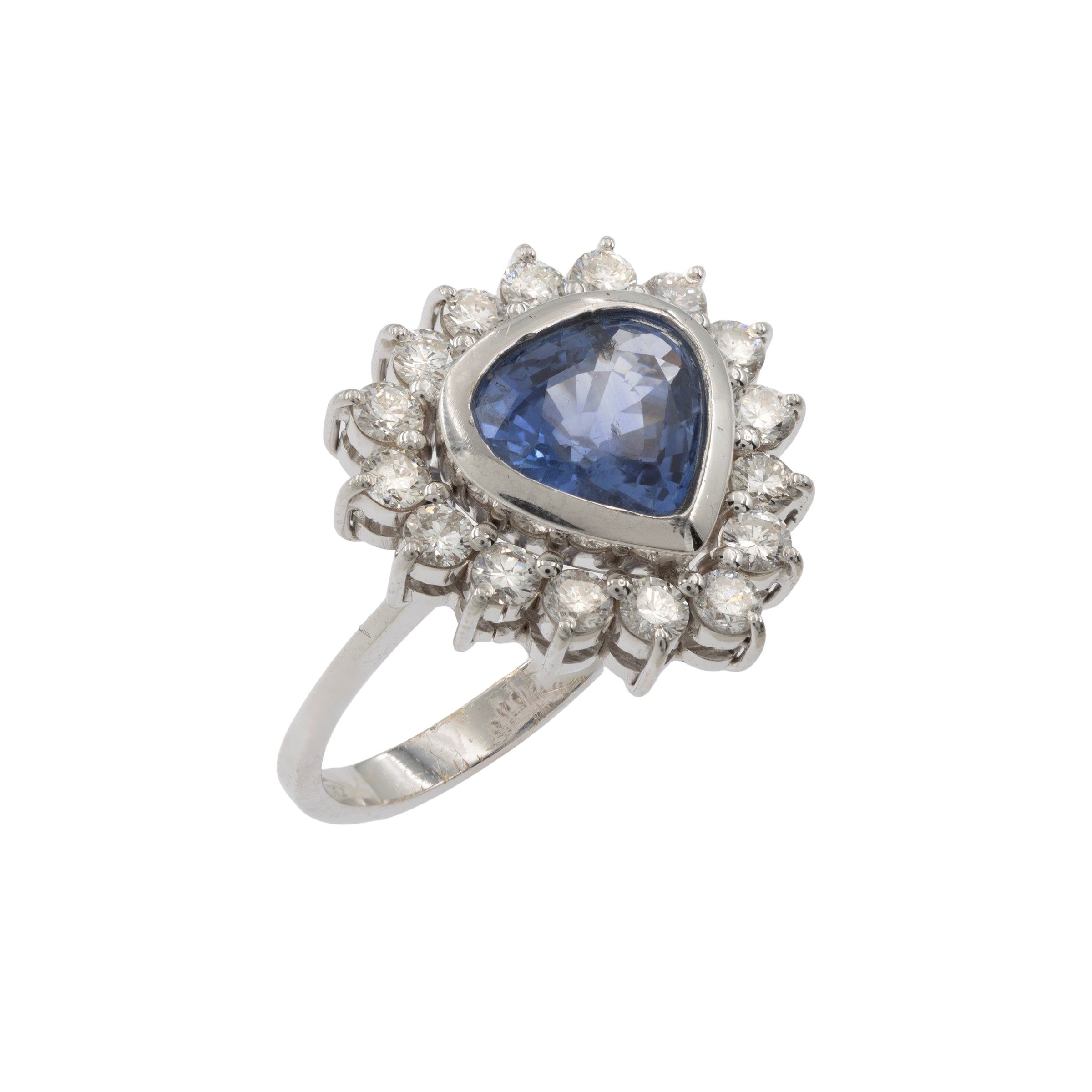 Anello in oro bianco 18kt e zaffiro naturale taglio a cuore
