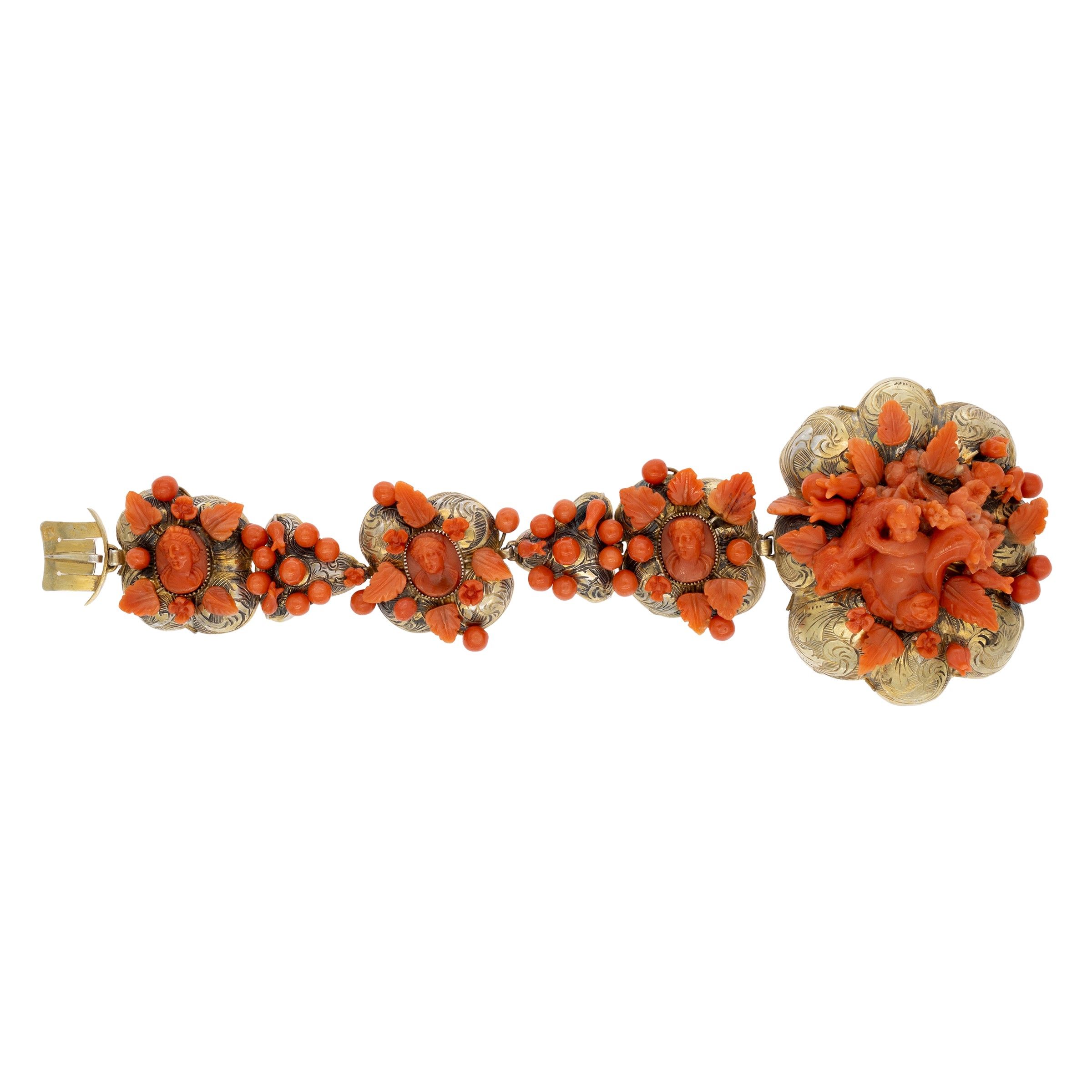 Antico bracciale in oro giallo titolo 833 e corallo scolpito