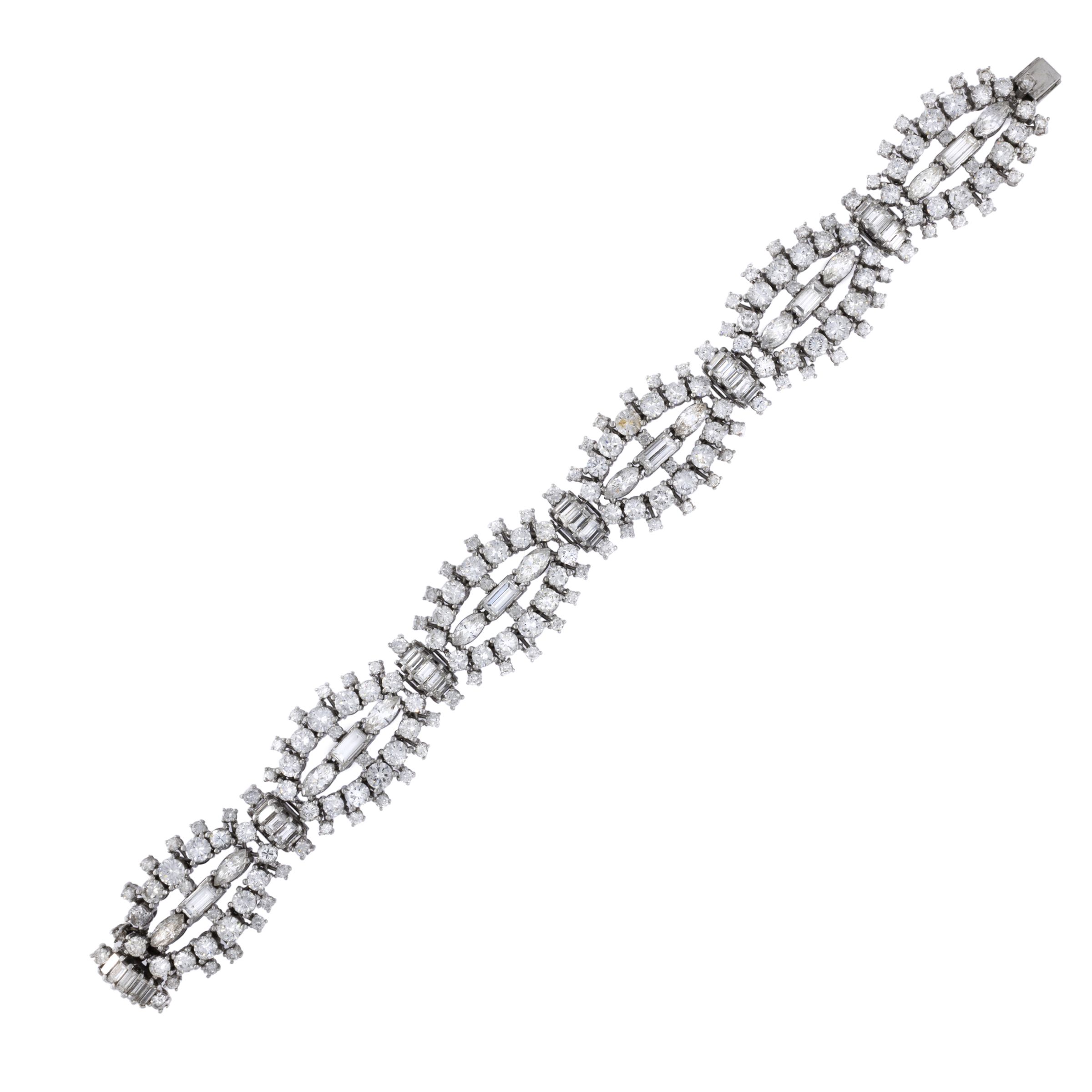anni 50/60 taglio brillante, marquise e baguette ct 18 circa, chiusura a scomparsa, lievi difetti, lunghezza 18 cm.