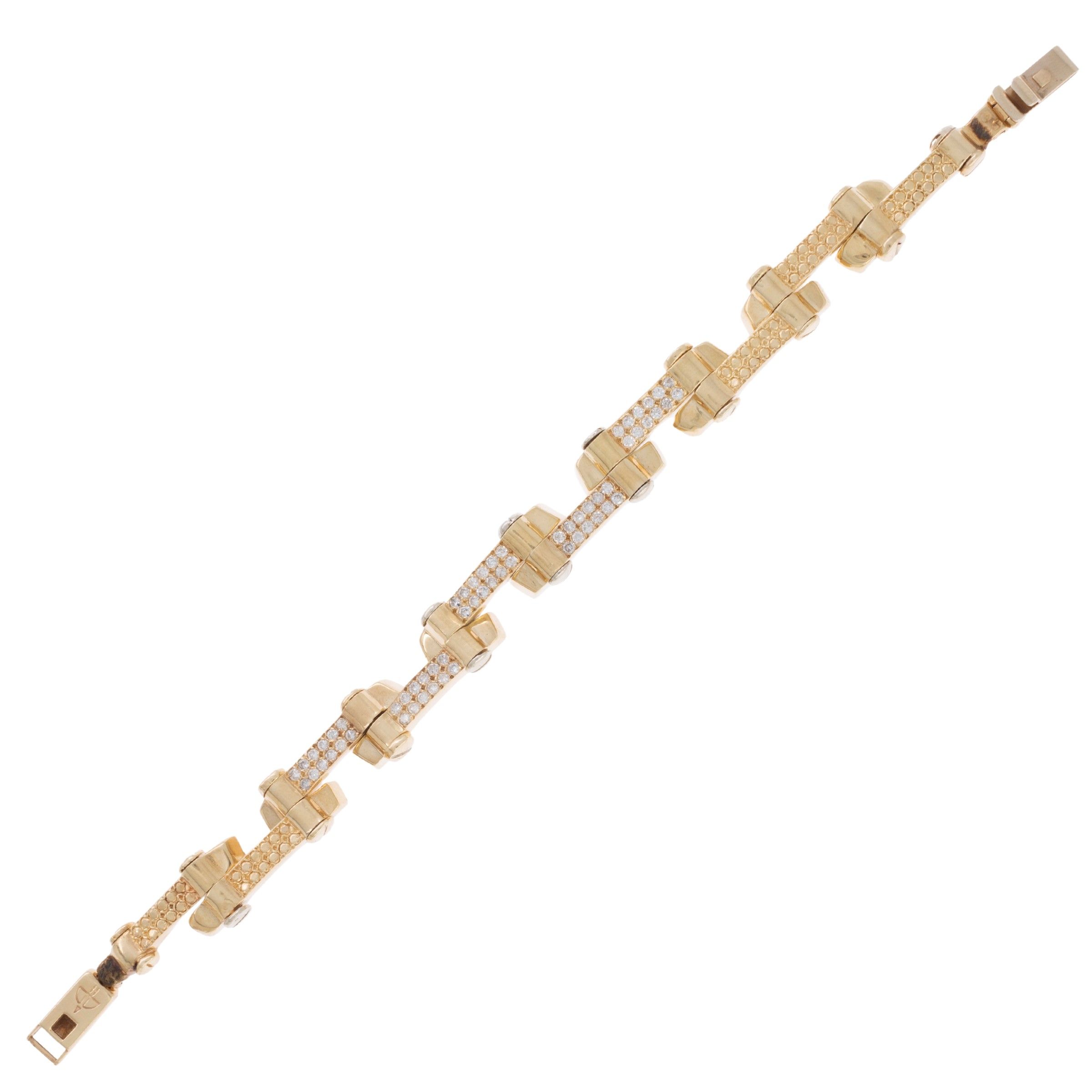 in oro giallo 14kt e diamanti taglio brillante 1,50 circa, lunghezza 17 cm.