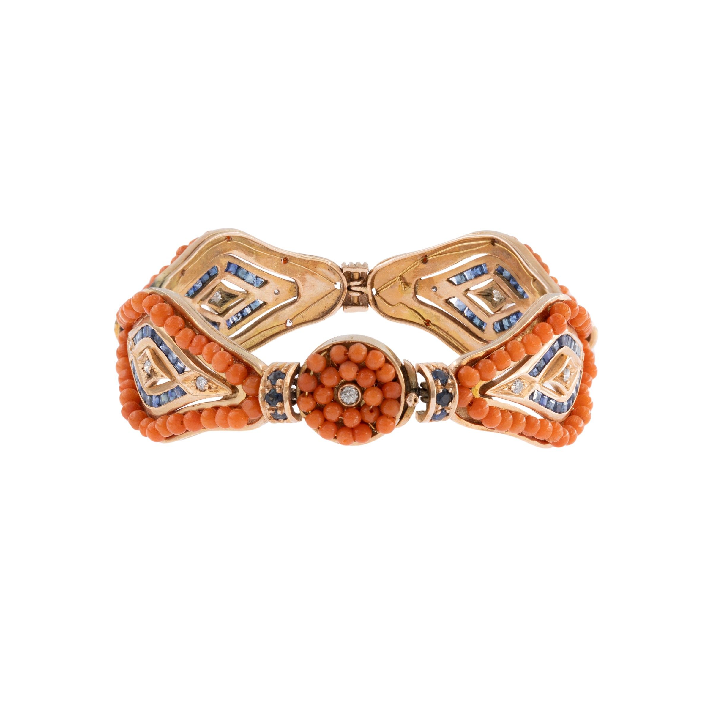 Bracciale in in oro rosa 12kt corallo zaffiri e diamanti