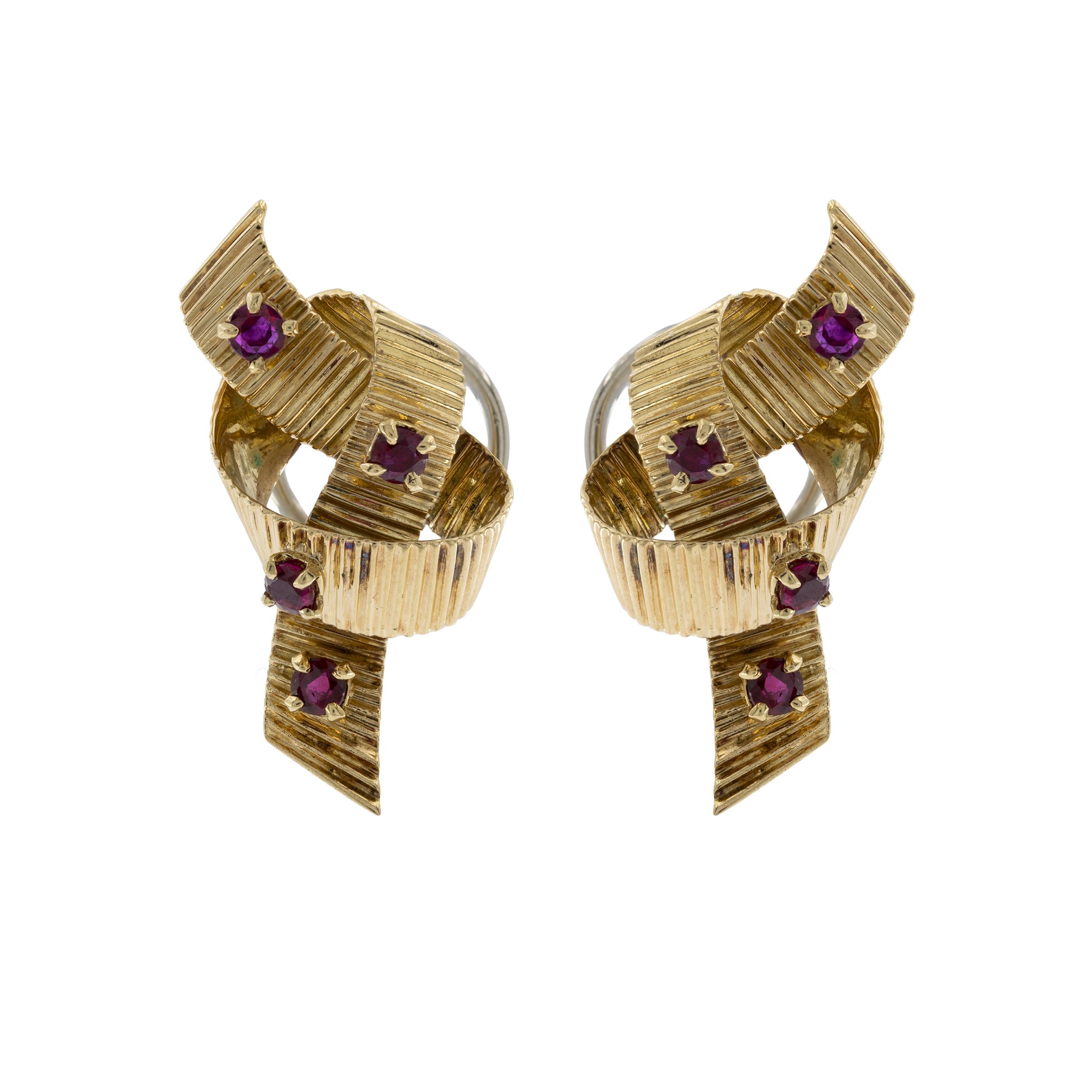 firmati, recano bollo Francia in oro giallo 18kt e rubini, dimensioni 2,8x1,3 cm.