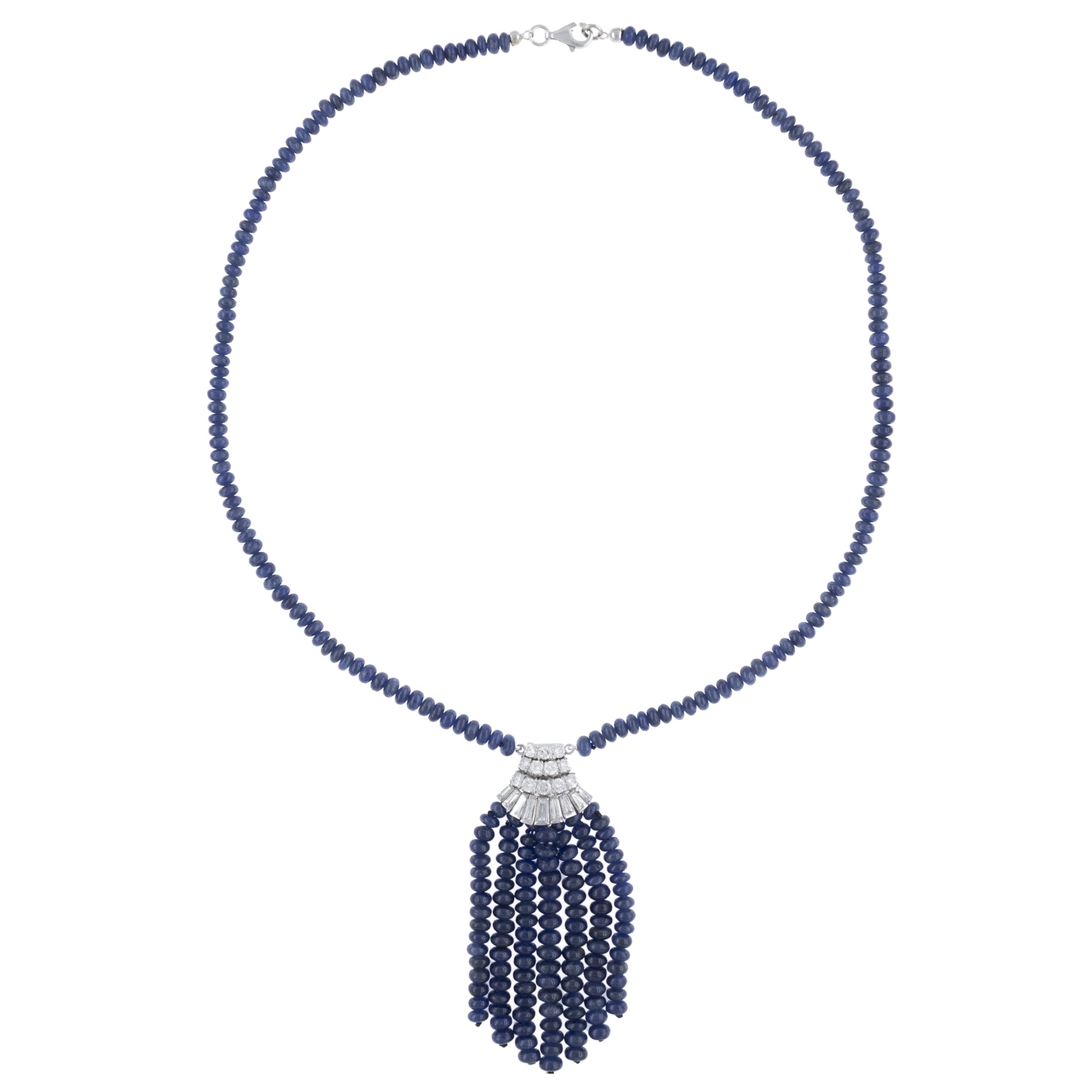 in oro bianco 18kt, zaffiri e diamanti taglio brillante e tapper ct 2 circa, lunghezza 42 cm.