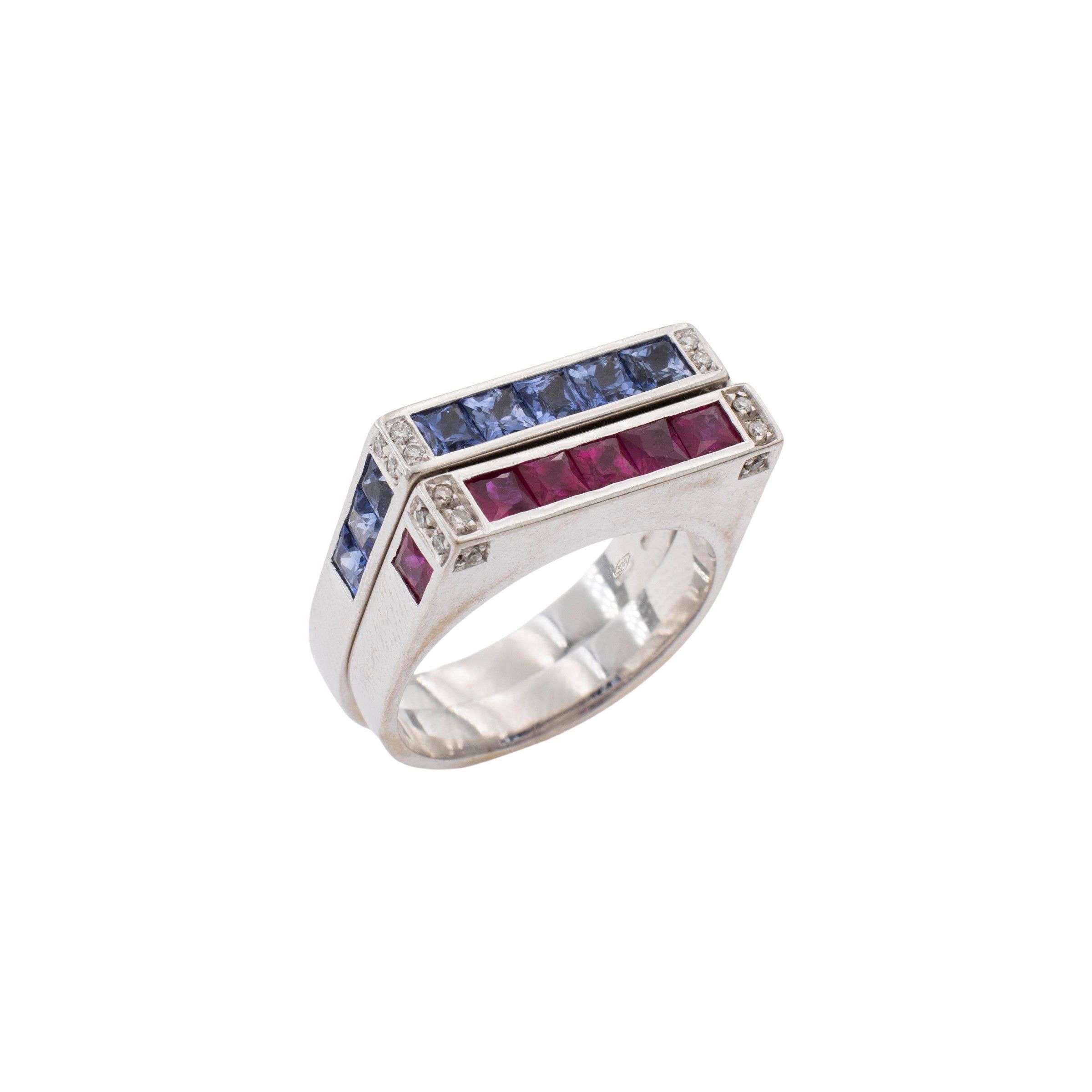 Coppia di anelli in oro bianco 18kt a motivo geometrico