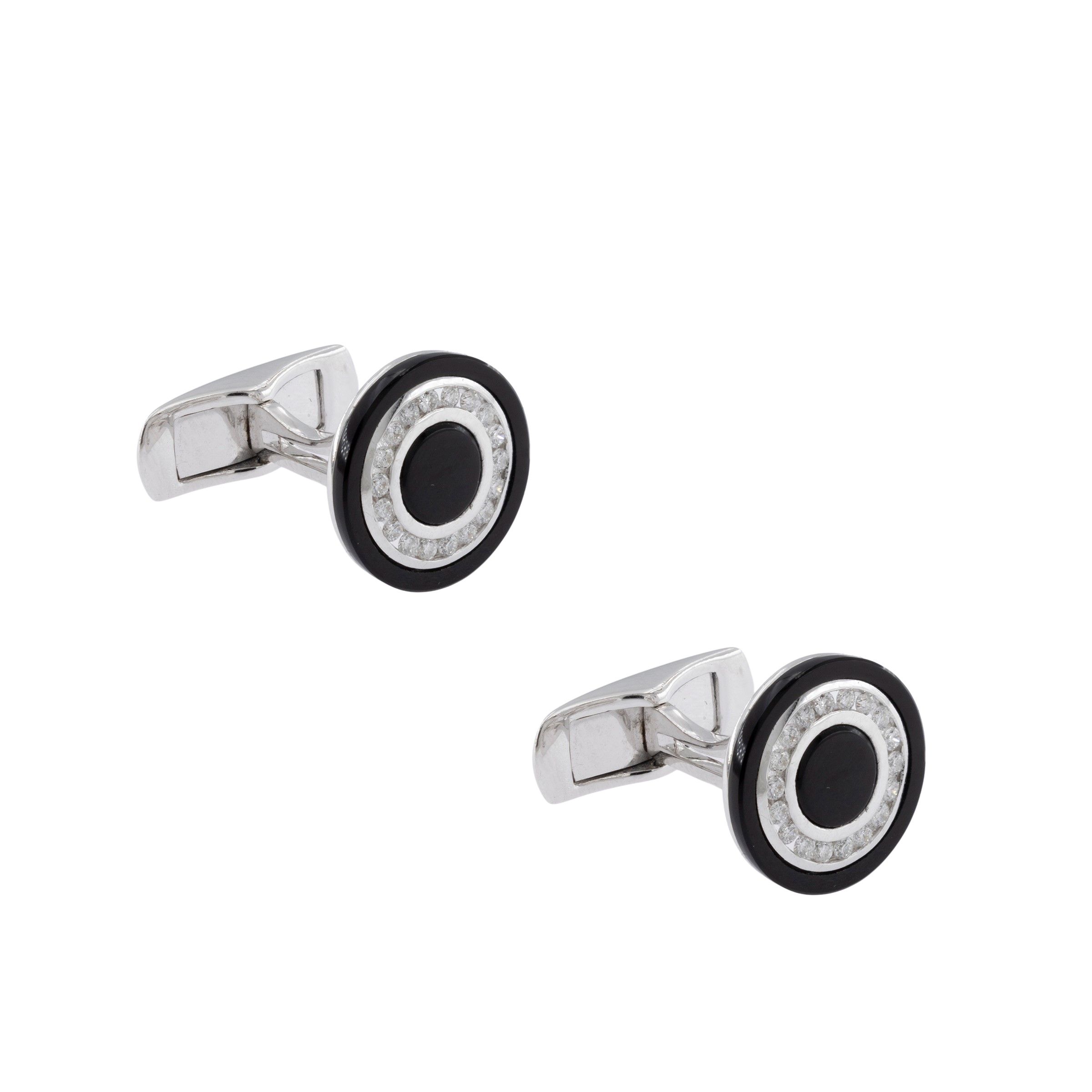Gemelli in oro bianco 18kt onice nero e diamanti