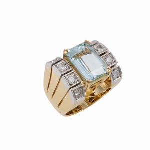 peso 24 gr. anni 40/50 taglio ottagonale a gradini ct 6 circa ai lati diamanti taglio brillante ct 0,80 circa, [..]
