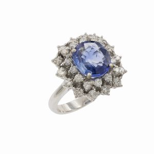 peso 9 gr. circa, taglio ovale misto ct 2,78 circa, privo di trattamento termico, contornato da diamanti taglio [..]
