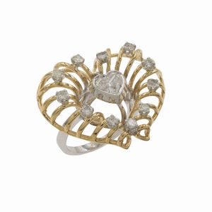 peso 25 gr. firmato Valente diamanti taglio brillante ct 1,50 circa, misura 15