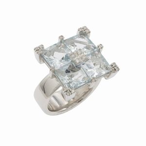 peso 13 gr. firmato Salvini in oro bianco 18kt, quattro acquamarine taglio carré e diamanti taglio brillante ct [..]
