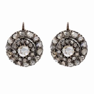 Antichi orecchini a monachina in oro argento e rose di diamante