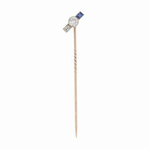 peso 2 gr. primi '900 un diamante taglio brillante ct 0,25 circa, altri diamanti e zaffiri taglio carré, lunghezza [..]