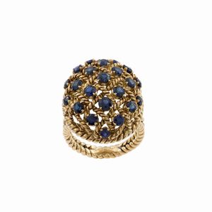 Cartier Paris anello in oro giallo 18kt e zaffiri tondi