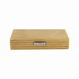 Trousse portacipria e portarossetto in oro giallo 18kt con diamanti