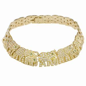 Girocollo elefanti in oro giallo 18kt e diamanti