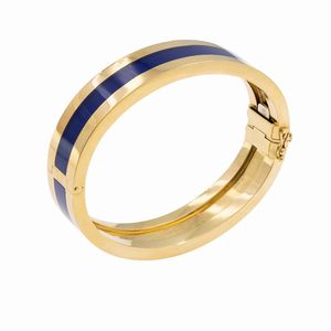 Bracciale a manetta in oro giallo 18kt e smalto blu
