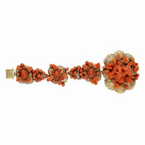 Antico bracciale in oro giallo titolo 833 e corallo scolpito