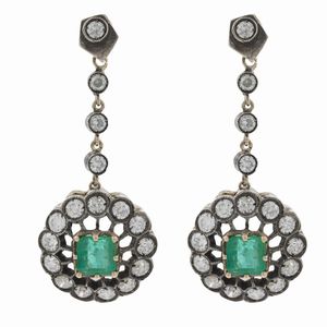 peso 10 gr. primi '900 smeraldi taglio carré ct 1,30 circa, diamanti taglio brillante antico ct 1,50 circa, lunghezza [..]