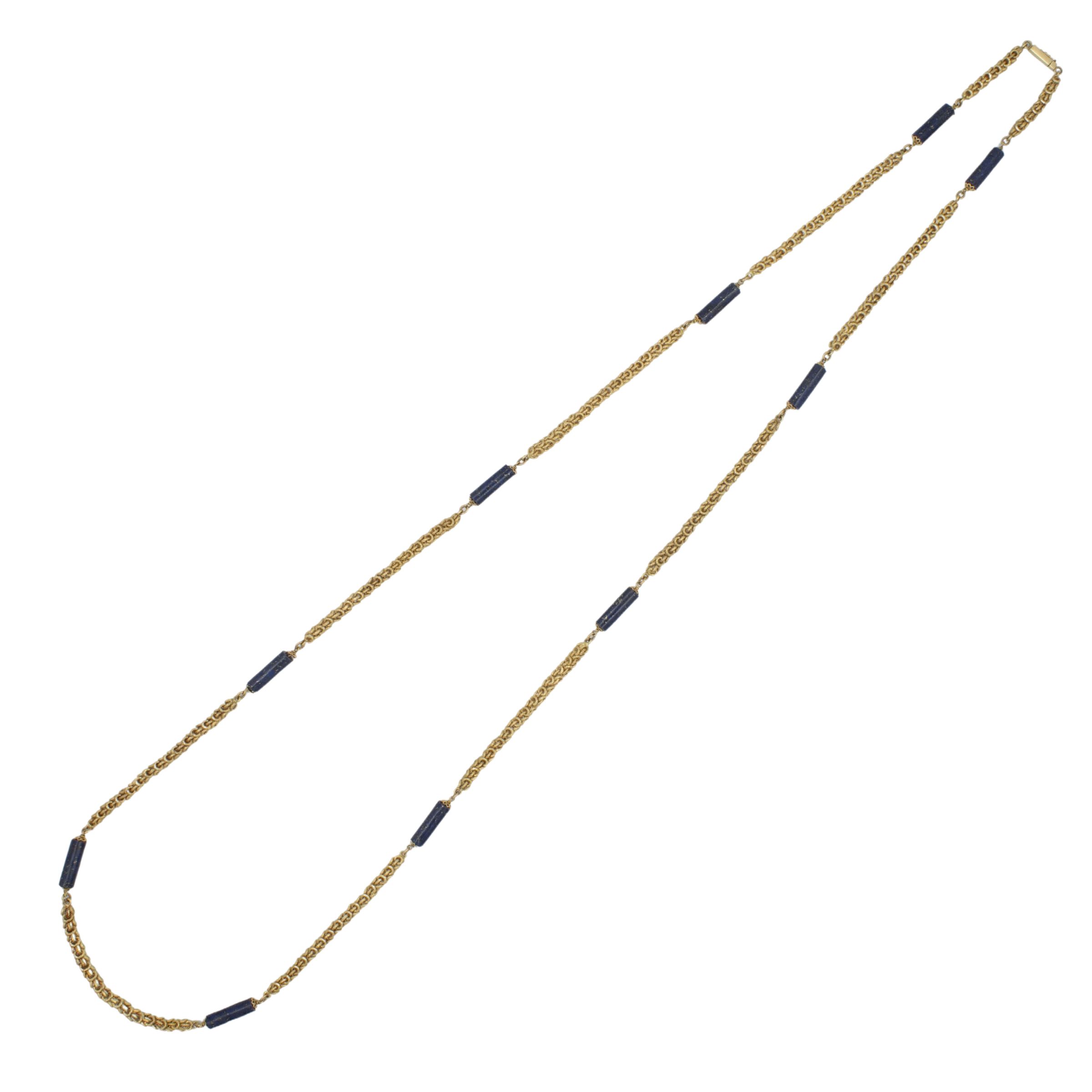Lunga collana in oro giallo 18kt e lapislazzulo