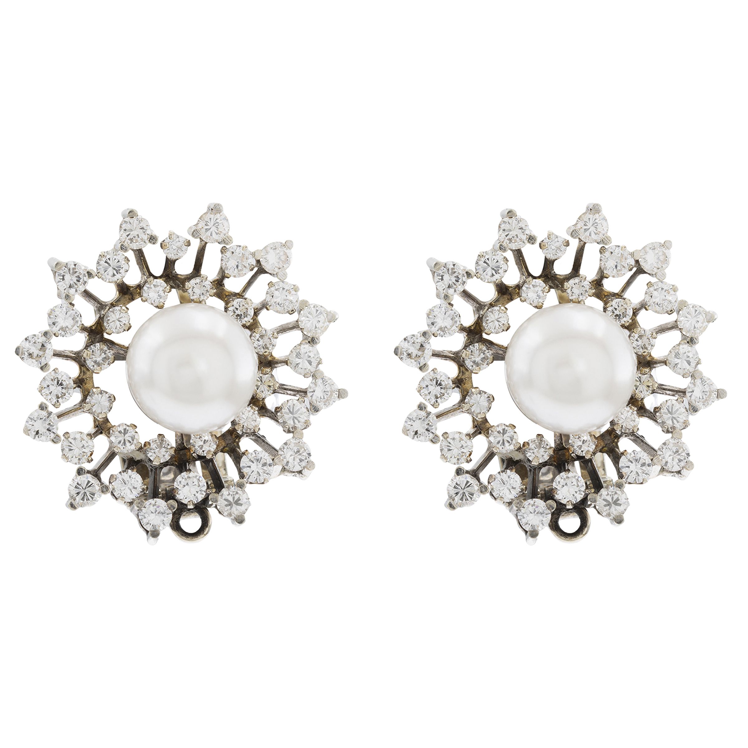 Orecchini a lobo in oro bianco 18kt con perle e diamanti