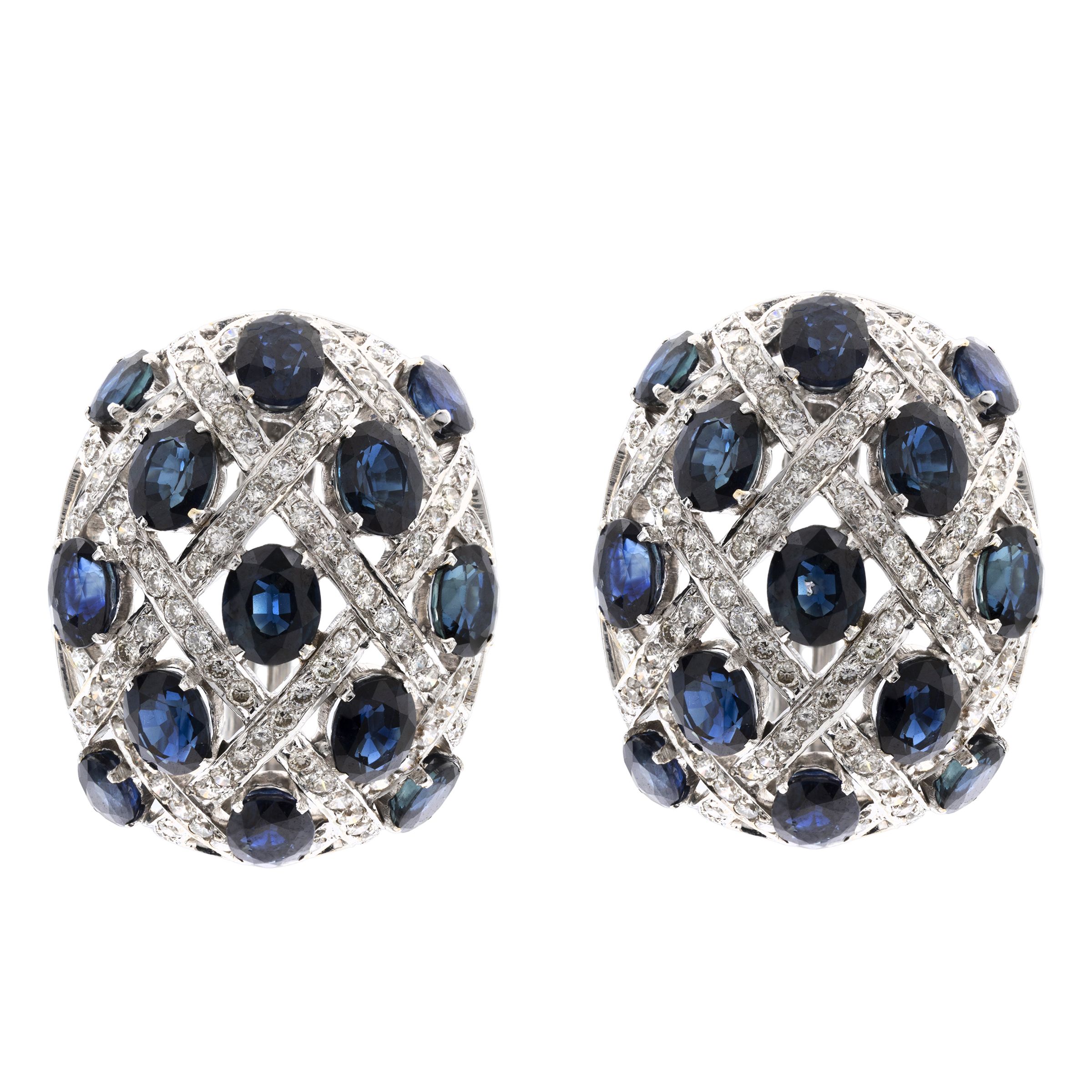 zaffiri taglio ovale misto ct 5 circa, diamanti taglio huit-huit ct 1,40 circa, dimensioni 2x2 cm.