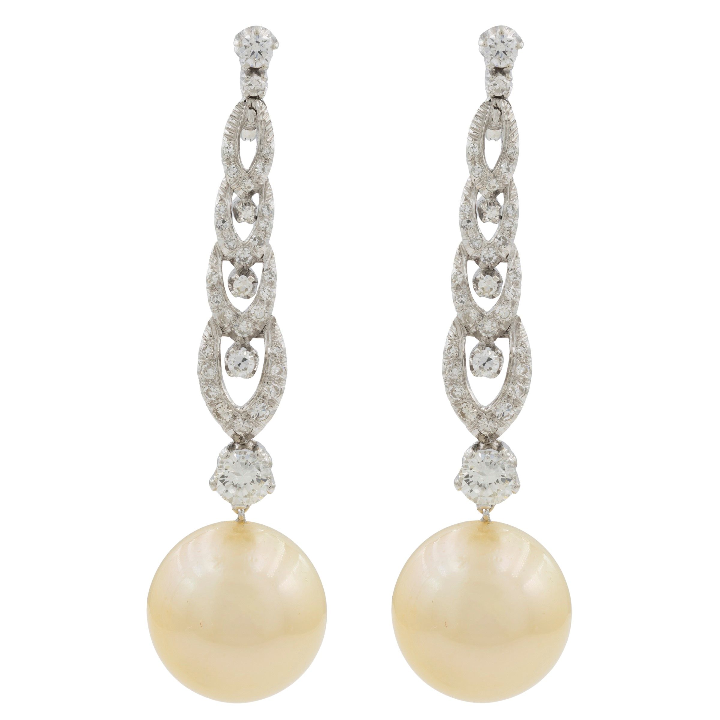Orecchini pendenti in oro bianco 18kt perle golden South Sea e diamanti